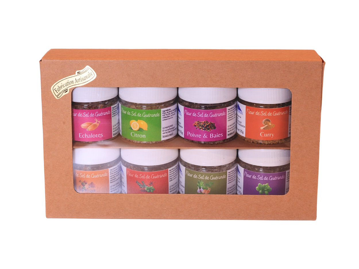 coffret fleur de sel de guérande 8 pots de 35g dans un coffret kraft LE NATURSEL
